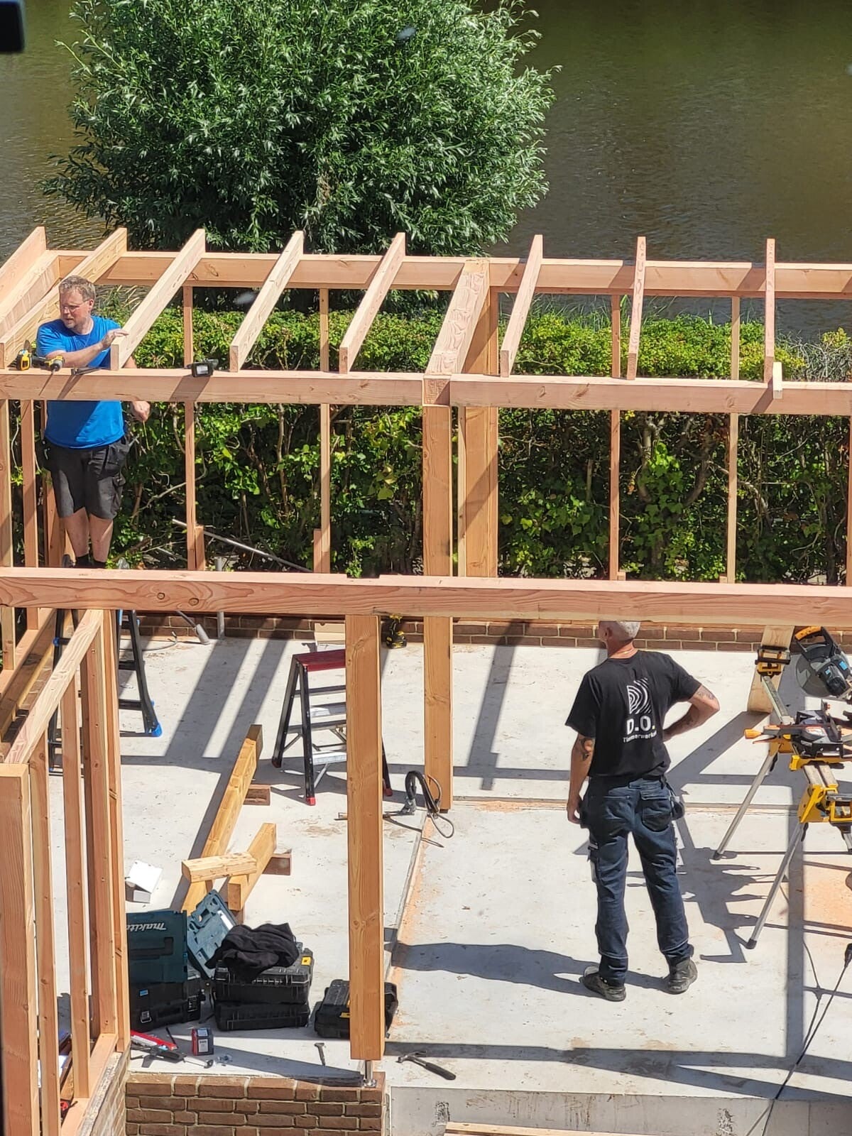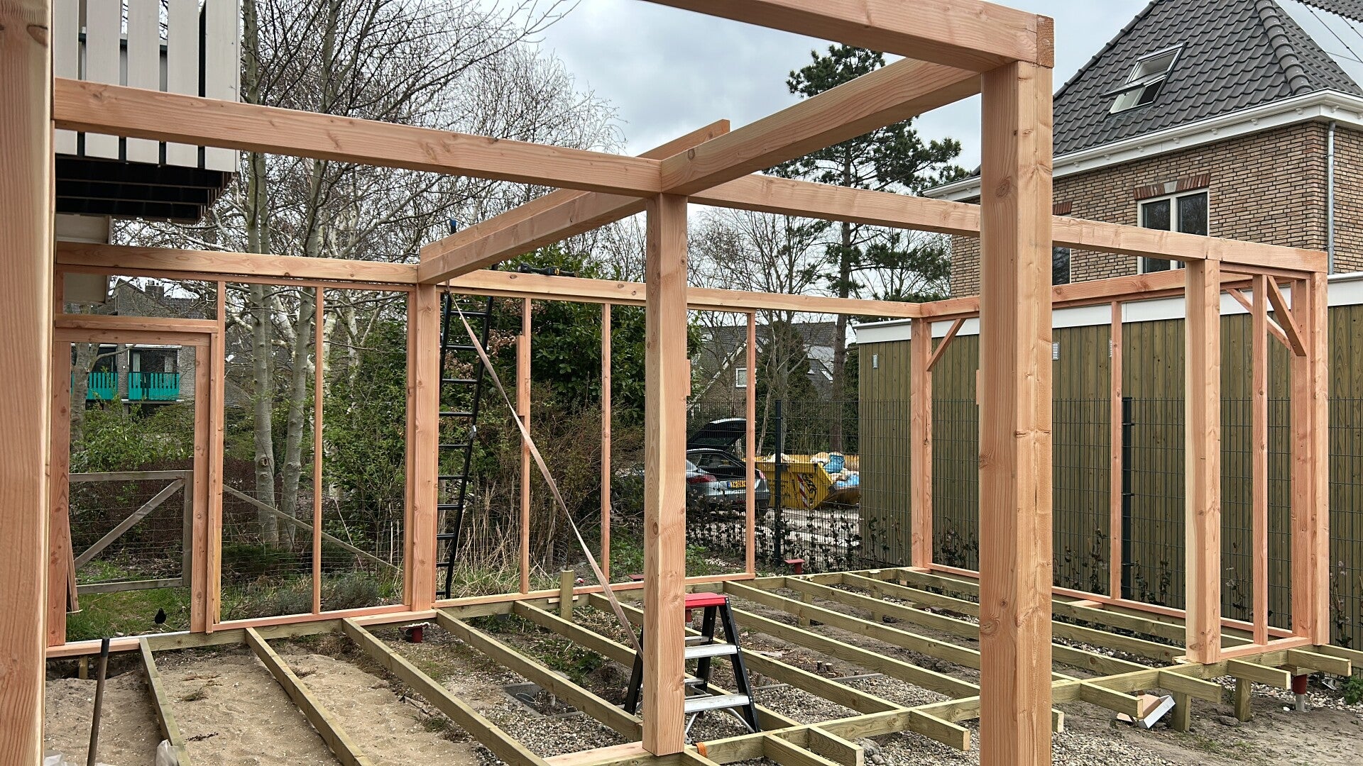 Leuk detail is dat de avond voor de aanvang aan ons werd gevraagd om de sauna niet in, maar aan de overkapping te bouwen. Wat we natuurlijk naar wens hebben uitgevoerd!